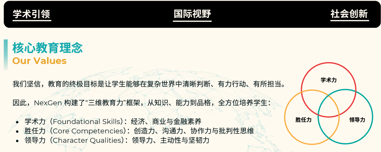 NexGen致力于打造一个面向未来的教育平台,赋能下一代具备在不确定世界中成长与引领所需的知识力、思维力与全球视野。通过与世界顶尖高校、企业与学术组织的长期合作,NexGen 融合学术严谨性与真实世界的相关性,为学生提供真正有意义、有深度、有影响力的学习体验。